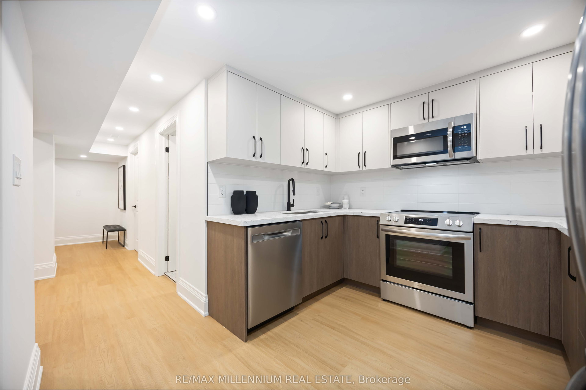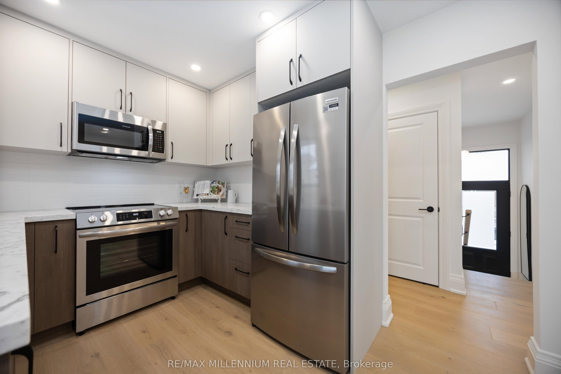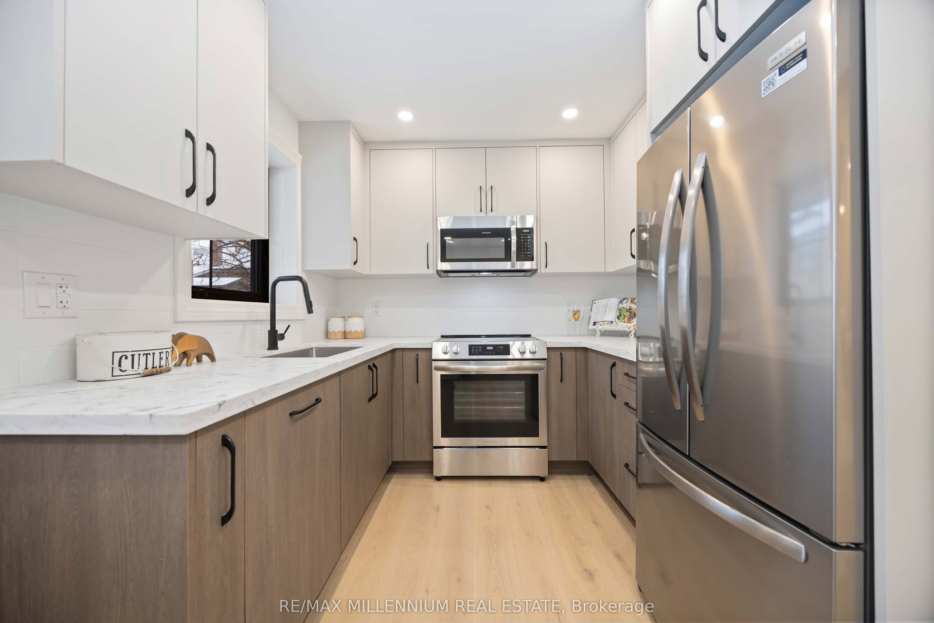 FULLY UPGRADED 3+2 bedroom home offering exceptional versatility and income potential, featuring two full bathrooms, two kitchens, and two separate laundry areas-ideal for extended family or a self-contained rental or in-law suite.The main floor features 3 bedrooms and a 4-piece bath, while the finished basement offers 2 additional bedrooms and a 3-piece bath with a walk-up separate entrance. Both kitchens are fully equipped with stainless steel appliances, including 2 fridges, 2 stoves, 2 over-the-range microwaves, and 2 dishwashers (one custom-panelled, one stainless), along with 2 washers and 2 dryers for added convenience.This home has been extensively renovated inside and out, including newer sleek black windows, doors, and garage door, sleek black updated soffits, eavestroughs and downspouts, electrical, plumbing, insulation, fencing, and deck also updated. Exterior upgrades include a new concrete main entrance landing, asphalt driveway, 6×6 retaining wall, and custom garden planter boxes.Interior highlights include a custom oak staircase, wide-plank white oak hardwood flooring throughout the main floor, luxury vinyl flooring in the basement, 7″ baseboards, updated window and door casings, all new interior doors, and custom cabinetry in both kitchens, bathrooms, and laundry areas. Additional features include pot lights, updated interior and exterior lighting, fresh paint throughout, Nest thermostat, furnace, A/C, and hot water tank.Enjoy a walkout from the main-floor bedroom to the deck via new patio doors, plus a fully separate basement walk up entrance-making this home move in ready.